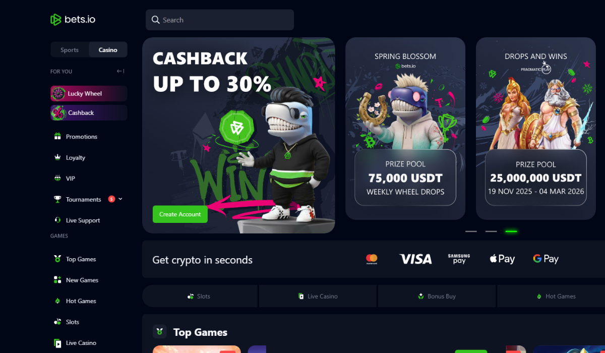#3. Bets.io: Reliable Bitcoin Casino with 17K+ Games & Cashback Rewards