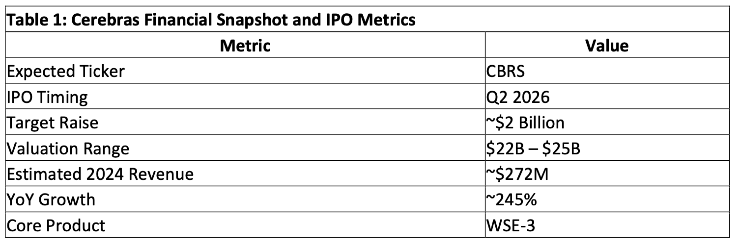 Table 1: Cerebras Financial Snapshot and IPO Metrics