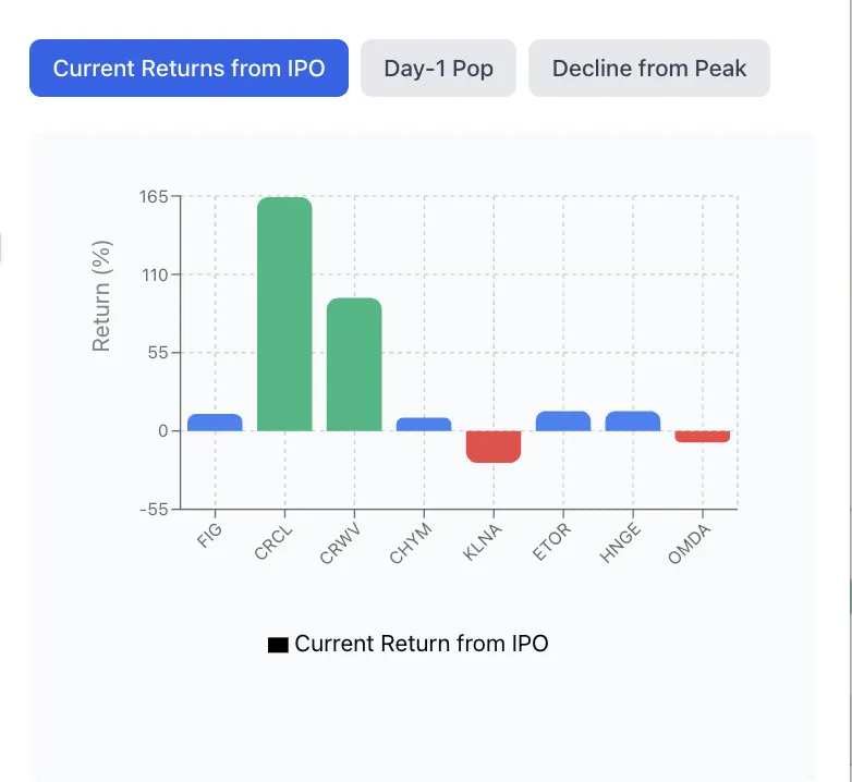 Among numerous star startups,$Circle (CRCL.US)$(Stablecoin issuer) becomes one of the few survivors: benefiting from favorable policies, its stock surged on the first day of listing and, despite a subsequent pullback, remains solidly in positive territory, standing as the only firm winner.
